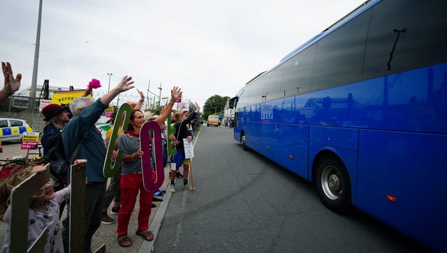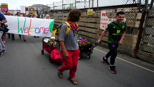 “Firefighting operations on vessels such as the Bibby Stockholm provide significant challenges and require specialist training and safe systems of work. The diminished safety provisions only exacerbate our operational concerns,” Ben Selby, the assistant general Secretary of the FBU wrote. The website also quoted Dorset councillors as describing the evacuation point – a quayside compound – as “completely inappropriate". CNN quoted chief executive of the UK Health Security Agency chief executive Jenny Harries as saying that respiratory infections were likely to spread. .“Generally respiratory infections, as we’ve all learnt through the pandemic … are at higher risk in confined settings with poorer ventilation, so the sorts of things we look at is what the ventilation is like,” Harries told BBC Radio 4’s “Today” show on Monday. Others have opposed the plan because of concern about the impact on the small surrounding community, which already has a shortage of medical services and is connected to the mainland by a single road. Economic Times quoted Portland resident Richard Hatfield as saying, “Refugees have become such a divisive topic on a local and national scale” Hatfield does not support the project. However, others loclas have lent support to the plan. [caption id=“attachment_12973192” align=“alignnone” width=“640”] Supporters carry welcome packs they have made as they hold placards outside Portland Port before the first asylum seekers arrive to board the Bibby Stockholm. AP[/caption] Meanwhile, rights groups have complained that it is inappropriate to house asylum-seekers in such accommodation. A charity for refugees, Care4Calais, said lawyers who intervened got transfers cancelled for about 20 asylum-seekers. “Amongst our clients are people who are disabled, who have survived torture and modern slavery and who have had traumatic experiences at sea,” said Steve Smith, the group’s CEO. “To house any human being in a ‘quasi floating prison’ like the Bibby Stockholm is inhumane.” Steve Valdez-Symonds of Amnesty International UK branded the barge “a shameful way to house people who’ve fled terror, conflict and persecution”. It was previously used by Germany and the Netherlands to house homeless people and asylum-seekers, but opponents in Britain have noted it was previously described as an “oppressive environment”. UK government defiant But the government remains insistent on following its plan through. The UK government wants to use barges and former military bases to accommodate some migrants after the cost of housing them in hotels soared to $2.4 billion last year. As per Sky, the British government is currently spending $7.6 dollars to keep 51,000 migrants at hotels.