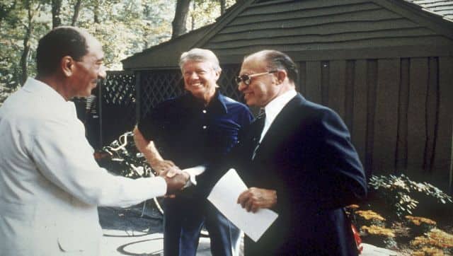 President Dwight D Eisenhower and Soviet premier Khrushchev pose for photos outside the main lodge at the presidential retreat at Camp David in 1959. File image/AP[/caption] Years later, in 1959, at the height of the Cold War, Eisenhower hosted Soviet Premier Nikita Khrushchev at Camp David. It was the first time a Soviet leader had visited the United States and reports said the two leaders watched American Western movies. Perhaps, the most significant diplomatic event that took place at Camp David was the signing of the Camp David Accords during the 1978 peace treaty between Egypt and Israel spearheaded by Jimmy Carter. The US president had then thought that hosting the meeting at Camp David would take some of the political pressure off the situation. Negotiations still took much longer than expected, as Israeli prime minister Menachem Begin and Egyptian president Anwar Sadat didn’t speak to the other at times, but in the end, the historic accords were signed. [caption id=“attachment_13012032” align=“alignnone” width=“640”]