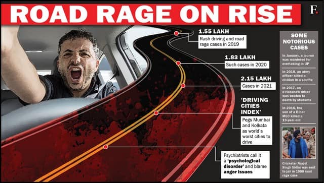 Another day in India and another incident of road rage. This time, a 39-year-old Delhi delivery worker was beaten to death – allegedly by two young men on Saturday night for not giving way. The victim was identified as Pankaj Thakur, who worked as a shop helper and also delivered groceries on a part-time basis, police said. The police have arrested the accused Manish Kumar (19) and 20-year-old Lalchand. Such cases have seemingly become ubiquitous in India. Union road transport minister Nitin Gadkari told the Lok Sabha in March 2022 that as many as 215,000 cases of road rage and rash driving were reported in 2021. That figure was a jump from 1.83 lakh cases in 2020 – which in turn rose from 1.55 lakh cases in 2019. Let’s take a closer look at road rage and the worst incidents in the country: What is road rage? As per New Indian Express, experts call road rage a ‘sudden expression of anger’. This can be a response to fellow motorists or pedestrians. People involved in such incidents suffer from anger and impulse control issues, experts say.