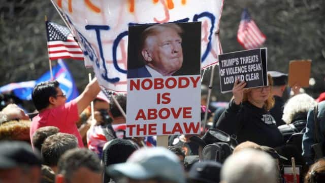 . Trump was not subjected to be photographed, but was still fingerprinted and given a booking number. Trump’s battle has just begun Tuesday’s appearance in court is known as ‘discovery’ and now the next date has been set for 4 December. There are chances that Trump’s lawyers will ask for a transfer of venue. Matthew Galluzzo, a former prosecutor in the New York District Attorney’s office told Al Jazeera, “This man (Trump) is very unpopular in Manhattan.” Moreover, Trump has claimed that Judge Juan Merchan, who recently presided over a criminal tax fraud trial involving the Trump Organization, “hates” him and was “hand-picked” by Manhattan District Attorney Alvin Bragg, who is overseeing the case. [caption id=“attachment_12408942” align=“alignnone” width=“640”] Opponents of Donald Trump gather outside of the Manhattan Criminal Court during his arraignment in New York City. AFP[/caption] Interestingly, the court hasn’t issued a gag order on the case. This means that Trump can speak about the matter, though he’s been warned against making any statements that could further foment unrest or lead to violence against an official. Reuters has reported that the case would go to trial in January next year, but that is still a long way to go. The charges against Trump are Class E felonies and carry a maximum prison sentence of four years per count, though if Trump was convicted a judge could sentence him to probation. [caption id=“attachment_12408962” align=“alignnone” width=“640”]