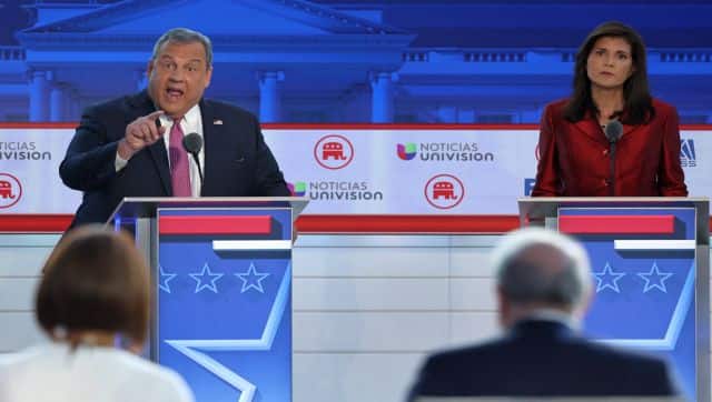 Former New Jersey governor Chris Christie speaks as former South Carolina Governor Nikki Haley listens during the second Republican candidates’ debate of the 2024 US presidential campaign. He lambasted Trump’s absence at the meeting, saying the former president would now be called Donald Duck. Reuters[/caption] He even added, “Donald, I know you’re watching. You can’t help yourself. You’re ducking these things. And let me tell you what’s going to happen. You keep doing that, no one here’s going to call you Donald Trump anymore. We’re going to call you Donald Duck.” Trump, on the other hand, travelled to Michigan and addressed workers at a non-union plant. “I side with the autoworkers of America,” said the former US president, laying out his vision of economic nationalism. He also attacked his successor, Joe Biden, saying, “Joe Biden claims to be the most pro-union president in history. Nonsense. Think of it. His entire career has been an act of economic treason and union destruction.” Debate matters The former US president’s absence at the GOP debates has become a talking point amongst leaders and pundits. Trump, himself, however, has said that he won’t attend them as he sees no point in them. In a statement sent a few minutes before the debate wrapped, Chris LaCivita, a senior adviser to the Trump campaign, complained that the Fox Business and Univision-hosted event was “as boring and inconsequential as the first debate,” and added that “nothing that was said will change the dynamics of the primary contest being dominated by President Trump.” LaCivita also noted the polling advantage that Trump has over his GOP rivals, and his competitiveness against President Joe Biden. “The RNC should immediately put an end to any further primary debates so we can train our fire on Crooked Joe Biden and quit wasting time and money that could be going to evicting Biden from the White House,” LaCivita added. [caption id=“attachment_13180052” align=“alignnone” width=“640”]