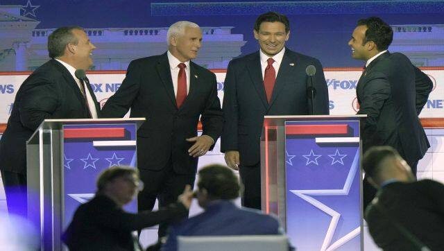 Former New Jersey governor Chris Christie, former vice president Mike Pence, Florida governor Ron DeSantis and businessman Vivek Ramaswamy talk during break in a Republican presidential primary debate hosted by FOX News Channel. Ramaswamy surprised all by performing well at the debate and stealing the show. File image/Reuters[/caption] Since announcing his candidacy for the 2024 US presidential elections, Ramaswamy has positioned himself as his party’s next Donald Trump, though younger and farther to the right. He’s also a defender of Trump, calling him “the best president of the 21st Century” and vowing that, as president, he would pardon him if he were convicted. He’s also called on other candidates to pledge the same.