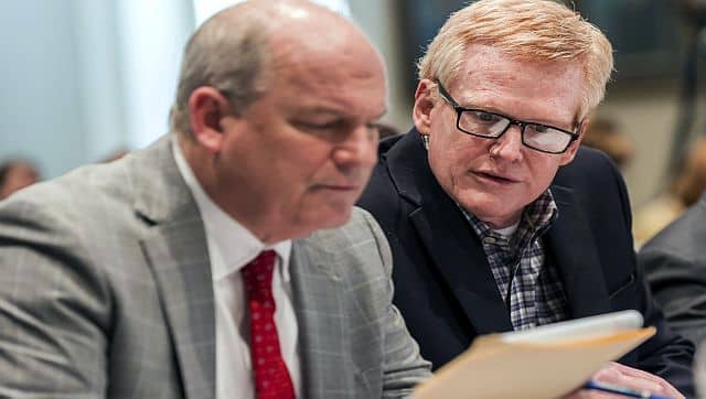 [caption id=“attachment_12225662” align=“alignnone” width=“640”] Alex Murdaugh, right, confers with defence attorney Jim Griffin during his double murder trial at the Colleton County Courthouse in Walterboro, South Carolina. AP[/caption]