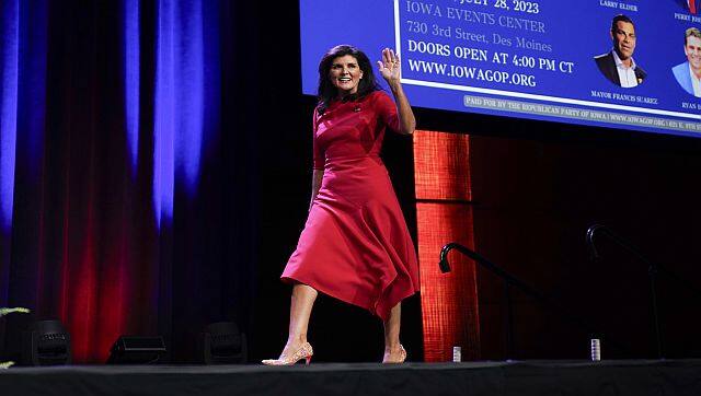 Republican presidential candidate former UN Ambassador Nikki Haley arrives to speak at the Republican Party of Iowa’s 2023 Lincoln Dinner in Des Moines, Iowa. AP[/caption] The only woman in the GOP race, Haley has said transgender students competing in sports is “the women’s issue of our time” and has drawn praise from a leading anti-abortion group, which called her “uniquely gifted at communicating from a pro-life woman’s perspective.” Bringing in $15.6 million (Rs 129 crore), Haley’s campaign says she has well over 40,000 unique donors and has satisfied the debate polling requirements. Vivek Ramaswamy The biotech
