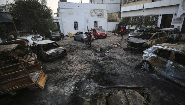 The head of orthopaedic surgery at Al-Ahli hospital, Fadel Naim, had just finished a procedure when he heard a huge explosion and his department filled with people screaming for help. “People came running into the surgery department screaming help us, help us, there are people killed and wounded inside the hospital,” he is quoted as saying by Reuters. “The hospital was full of dead and wounded, dismembered bodies. We tried to save whoever could be saved but the number was too great for the hospital team,” he said. How many people were killed in the blast? According to Gaza’s health ministry, 471 people were killed. An AP report on Wednesday quoted the ministry as saying that at least 500 were dead in the attack. The Israeli Defence Forces (IDF) said that this number has been inflated on purpose. However, it did not release a toll. The exact number is not known and it is difficult to independently confirm the number of casualties. Photos from the blast site show bodies lying lifeless on the ground and injured women and children. Several children covered in dust are seen being treated for their wounds. [caption id=“attachment_13270252” align=“alignnone” width=“640”] Palestinian children wounded in the Israeli bombardment of the Gaza Strip for treatment in a hospital in Khan Younis. AP[/caption] What has Israel said? Israel has denied involvement and even provided evidence that supports that it wasn’t an Israeli bomb that exploded at the hospital. It blamed Palestinian militants, saying that an outgoing Islamic Jihad rocket misfired. To back their claims, Israel released a series of videos of the blast, one of which shows the hospital and surroundings after being hit by the rocket. “A failed rocket launch by the Islamic Jihad terrorist organisation hit the Al Ahli hospital in Gaza City. IAF footage from the area around the hospital before and after the failed rocket launch by the Islamic Jihad terrorist organization," IDF said and shared the video on X.
