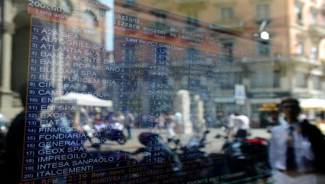 [caption id=“attachment_13598672” align=“alignnone” width=“640”] People are reflected on an electronic board displaying the stock index outside a bank in downtown Milan. Reuters[/caption]