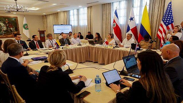 Immigration authorities from Panama, Costa Rica, Colombia, and the United States meet at the Bolivar Palace in Panama City on 1 November, 2022, to seek a strategy for the migration crisis occurring at their borders. AFP[/caption]