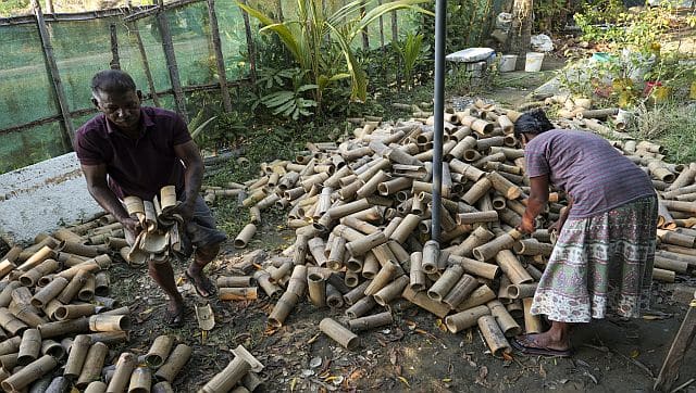 [caption id=“attachment_12470882” align=“alignnone” width=“640”] Murukesan and daughter Nimitha Manoj pick bamboo pieces from their home nursery for mangrove saplings to be planted on Vypin Island in Kochi, Kerala. AP[/caption]