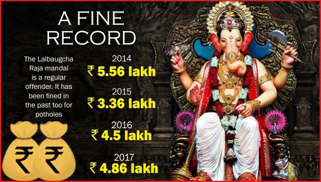 Not a first-time offender The Lalbaugcha Raja mandal has been fined in the past too, for damaging roads by affixing bamboo sticks and set up barricades in the vicinity of the pandals. [caption id=“attachment_11300591” align=“alignnone” width=“640”]