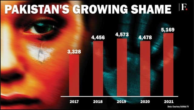 Graphic: Pranay Bhardwaj[/caption] Pakistan has a population of 107 million women and apart from sexual assault, physical violence is also common. According to Pakistan’s Ministry of Human Rights, which cited the country’s Demographic and Health Survey (2017-2018), around 28 per cent of women between the ages of 15 and 29 have experienced physical violence. The Annual World Report 2022 by Human Rights Watch said that extensive rights abuses against women along with children were reported in Pakistan which ranks 167 out of 170 countries on the Global Women, Peace and Security Index. With inputs from agencies Read all the Latest News