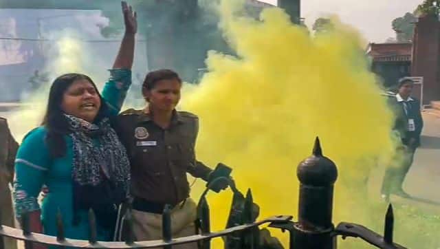 A police personnel apprehends a woman carrying a can emitting yellowish smoke while she was protesting outside the Parliament premises, during the Winter session, in New Delhi. PTI[/caption] Neelam Devi and Anmol Shinde. who protested outside the Parliament carrying red and yellow canisters, were also arrested. A Special Cell source revealed the accused reportedly met in Chandigarh during a protest on the Bhagat Singh Airport issue. Since then, they often met at fourth accused Vishal’s house in Gurugram. He along with his wife Vrinda Sharma have also been arrested. The intendion behind the breach was raising the issue of unemployment, farmers’ demands, Agniveer and One Rank One Pension, reported News18.a The
