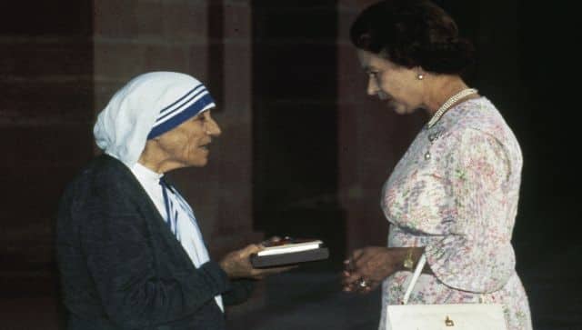 In this 24 November 1983 photo, Mother Teresa receives the insignia of the Honorary Order of Merit from Queen Elizabeth II in New Delhi. AP[/caption] During this visit, the monarch met the then Prime Minister Indira Gandhi. She also Mother Teresa and presented her with the honorary Order of the Merit, a British award for eminent service. The order is limited to only 24 members, although the British monarch can appoint foreigners as “honorary members”. [caption id=“attachment_11218861” align=“alignnone” width=“640”]