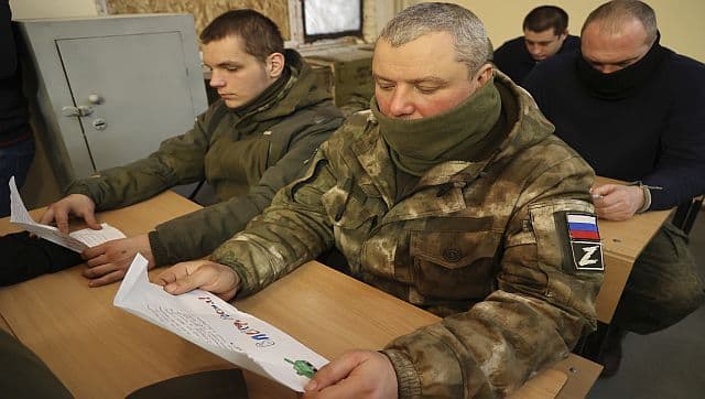 Russian soldiers read letters written by schoolchildren in a gesture of support at an undisclosed location in Russian-controlled Donetsk region, eastern Ukraine. AP[/caption] And he was right to be concerned. While many men complied with their mobilisation orders — expressing precisely the