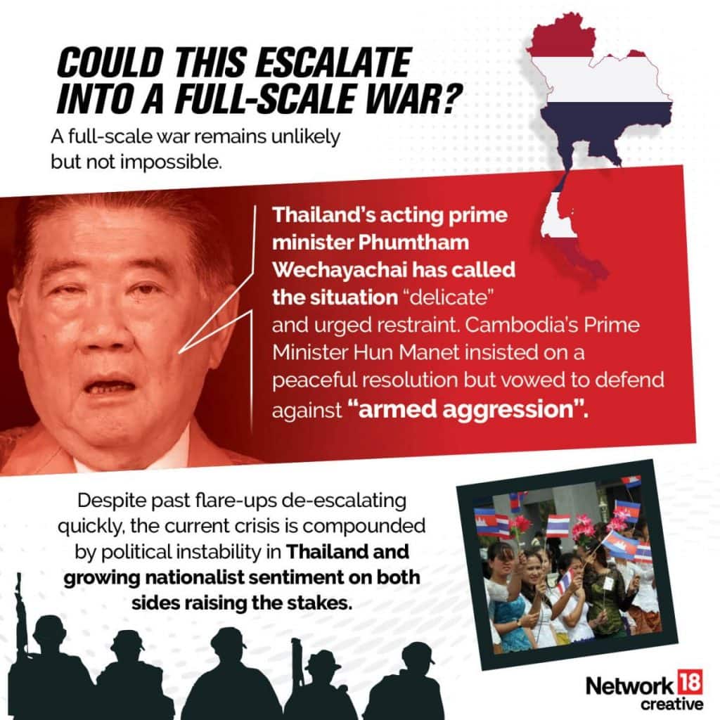 Even as Thailand warns of a war, the international community is seeking peace. In fact, the United Nations chief has called on both countries to show restraint. In a statement, UN Secretary General Antonio Guterres asked Thailand and Cambodia to resolve their escalating border dispute through dialogue.