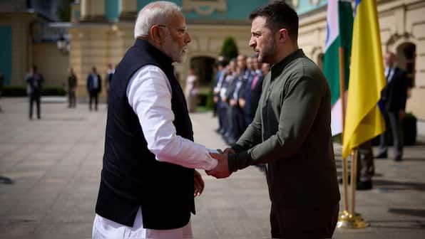 From Poland, Modi took a 10-hour train ride to Ukraine. He held bilateral talks with Ukrainian President Volodymyr Zelenskyy at the iconic Mariinskyi Palace in Kyiv. The two leaders also shared a solemn moment during their visit to the Martyrologist Exposition on children at the National Museum of History.