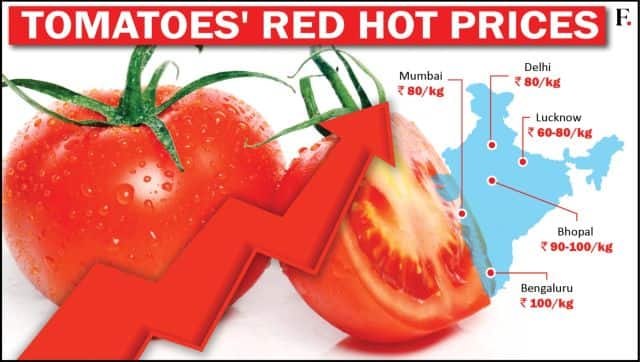 But what exactly is causing the price of tomatoes to skyrocket and will they rise even further in the days to come? How expensive are tomatoes? The price of the staple crop of Indian households, tomatoes, at markets across India. In Bengaluru and Hyderabad, the price of tomatoes has shot up to Rs 100 per kilogramme. In the financial capital, Mumbai, the situation was no better, with tomatoes being sold for Rs 80 a kg. In markets in Uttar Pradesh, the price had risen to Rs 80-kg. This comes as a shock, as prices a week ago were hovering between the Rs 40-50-mark.