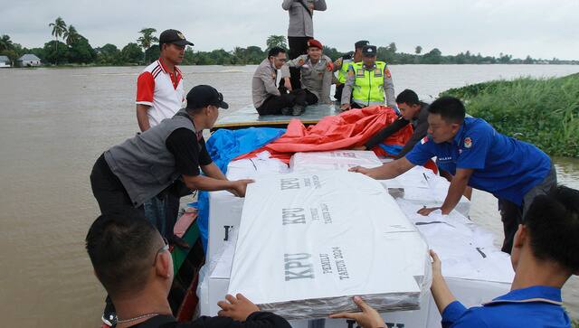 Speedboats will take ballots from Jakarta to islands off the Javan coast, while the military said warships have been enlisted to help deliver ballots. The risk of flooding is high, with more than 2,000 polling booths vulnerable in capital Jakarta alone, according to authorities. The megalopolis’ election authorities have mooted relocating polls to higher ground, using mobile pumps or even rubber boats. They will also wrap ballots in plastic for protection. [caption id=“attachment_13723452” align=“alignnone” width=“640”] Electoral workers arrange ballot boxes in a boat during the distribution of election paraphernalia to remote villages, in Pemulutan, South Sumatra. AP[/caption] The fears are not unfounded. In neighbouring Banten province last month, a storage facility was inundated by heavy rain, causing hundreds of ballots to be destroyed. All this takes its toll. In 2019, over 890 election workers died after the polls, as per Al Jazeera. Communal voting Voters in remote areas of the mineral-rich region will use a communal voting system called Noken, in which a village head represents his community at the ballot box. It is a challenge to the concept of direct voting, and local officials have said the system is fraud-prone, in a country where vote buying is already rife. “People can’t really say anything, they might have a different choice but… the village uses the ‘one command’ system,” said Papua cultural expert Marshall Suebu. Doppelgangers galore As per Straits Times, a number of doppelgangers have gone viral this election. For example, Arie Budiarto, a community leader from West Java’s Banten, gained much attention for looking rather like Ganjar Pranowo – one of the three main candidates. Wasil Afin, a fried rice seller from Central Jawa, also got attention for his resemblance to presidential candidate Anies Baswedan. Mascots Indonesia also has two election mascots named Sura and Sulu. Sura, a male songbird, gets his name from “suara rakyat” – meaning the “voice of the people.” Sulu, meanwhile, gets he rname from “suara pemilu” – meaning the “voice of the election”. Fast count According to Al Jazeera, the counting begins as soon as voting ends. Many polling stations employ use a sampling method to determine a ‘quick count’ – which has proven fairly accurate. While the preliminary results will likely be out tomorrow, the final result could take weeks. With inputs from agencies
