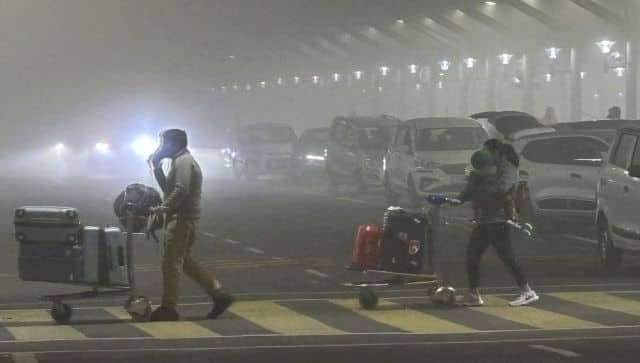 in the country since Sunday. Thick fog in Delhi has hit operations at one of India’s busiest airports and the effect has been cascading. Around 53 flights were cancelled and 120 were delayed at Delhi’s Indira Gandhi Airport because of fog, affecting domestic and international travel on Wednesday. “A total of 53 flights including 21 domestic arrivals, 16 domestic departures, 13 international departures and three international arrivals scheduled are cancelled and not operating because of fog and other operational reasons from and to Delhi,” news agency ANI reported quoting Delhi Airport Flight Information Display System. [caption id=“attachment_13624742” align=“alignnone” width=“640”] The early morning fog at the Indira Gandhi International Airport, in New Delhi. Hundreds of flights have been disrupted because of the weather conditions. File photo/AP[/caption] The dense fog is expected to continue for two to four more days with no respite from the cold wave, said the India Meteorological Department. While the weather-related chaos cannot be controlled, passengers complain that airlines and airports have been inadequate in communicating delays. The aviation ministry has stepped in, announcing