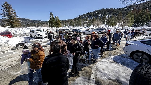 — where either substantial rainfall or snowfall can occur — rain-on-snow events are most common, causing both melting and risk of roof collapses. [caption id=“attachment_12297292” align=“alignnone” width=“640”] San Bernardino Mountain residents line up for a chance to get food at a tent in front of the Goodwin & Son’s Market in Crestline, California following a huge snowfall that buried homes and businesses. AP[/caption] If all storms were created equal, there would be well-defined rain zones and snow zones, and the rain-on-snow flood risk would be low. But that isn’t what happens. Instead, not only does the snow zone elevation vary during an event, but it also varies substantially from one storm to the next. The most destructive rain-on-snow events occur when rivers are already running high and soils are saturated, which can occur in response to a series of warm atmospheric rivers interacting with a deep snowpack — like California’s mountains have right now. The order in which these storms occur — or the storm sequencing — is especially important for assessing flood risk because these events are, in part, caused by rapid shifts between cold periods of snow accumulation followed by warm rainfall events. What does research show about the future risk of rain-on-snow events in a warming climate? Even less is known about how rain-on-snow flood risk may respond as the planet warms. In a warmer climate, there will be less risk of rain falling on snow in the lower elevations