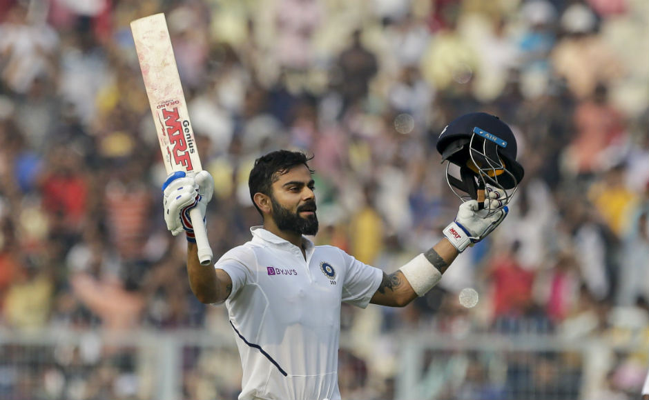 [caption id=“attachment_7691791” align=“alignleft” width=“940”] Indian skipper Virat Kohli aced the pink ball challenge as he brought up his 27th Test century against Bangladesh in the historic day-night Test at the Eden Gardens in Kolkata. The visitors trailed the hosts by 89 runs at the end of the second day’s play. AP[/caption] [caption id=“attachment_7691801” align=“alignleft” width=“940”]