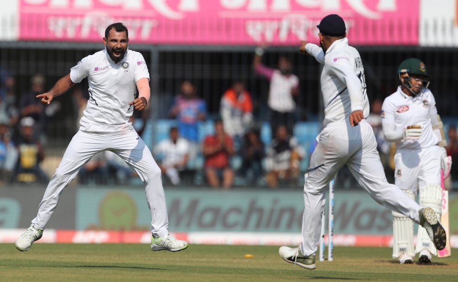 Mohammed Shami, who returned with figures of 3/27, anchored the Indian bowling effort which dismissed Bangladesh for 150 on Day 1. AP