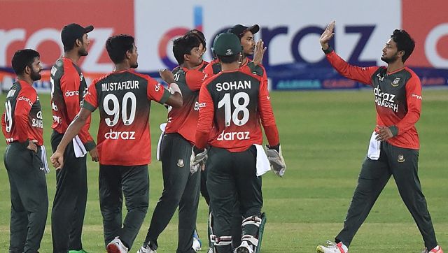 Dhaka: Shakib Al Hasan took four wickets as Bangladesh skittled out Australia for their lowest-ever Twenty20 total of 62 to seal the series 4-1 on Monday. [caption id=“attachment_9875641” align=“alignnone” width=“640”]