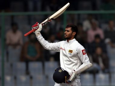 Chittagong: Dhananjaya de Silva struck a century and shared 187 runs in an unbroken second wicket stand with Kusal Mendis as Sri Lanka gave a strong reply to Bangladesh in the first Test in Chittagong on Thursday. De Silva made an unbeaten 104 while Mendis hit 83 not out, guiding Sri Lanka to 187-1 at stumps on the second day. Earlier, Rangana Herath and Suranga Lakmal took three wickets each to help the visitors dismiss Bangladesh for 513 in their first innings. [caption id=“attachment_4245551” align=“alignleft” width=“380”] File image of Sri Lanka’s Dhananjaya De Silva. AP[/caption] The pair came together after spinner Mehedi Hasan got rid of Dimuth Karunaratne for a duck shortly after Bangladesh’s innings ended with skipper Mahmudullah Riyad unbeaten on 83. De Silva led Sri Lanka’s batting charge with his aggressive approach and brought his fourth Test hundred off 122 balls with a cover drive off left-arm spinner Taijul Islam. This is de Silva’s second successive Test century after scoring an unbeaten 119 in Sri Lanka’s last match against India in New Delhi in December. Bangladesh, who are now leading Sri Lanka by 326 runs, wasted two reviews against Mendis and also dropped two chances offered by the right-hander. Mehedi dropped Mendis on four off paceman Mustafizur Rahman at second slip, before Imrul Kayes grassed another chance — this time off Mehedi’s bowling — with the batsman on 57. The hosts, who resumed the day on 374-4, added 139 runs to their overnight score with Mahmudullah leading the charge on the second day. Mahmudullah added 58 runs with debutant Sunzamul Islam for the eighth wicket, after three quick wickets rattled the home side early in the morning. Spinner Herath brought Mominul Haque’s majestic knock to an end in the third over of the day when the left-handed batsman flicked a catch to Mendis at forward short-leg. He made 176. Mominul who hit 16 fours and a six, faced 214 balls and added just one run to his overnight score. Herath struck again as Mosaddek Hossain lofted a catch to Lakshan Sandakan at mid-on after making just eight. Mehedi took Bangladesh past 400 with a lovely straight drive off paceman Lakmal, before smashing Herath for a six. But he was soon run out for 20 by Lahiru Kumara at third man. Sunzamul made 24 runs before he was stumped off left-arm wrist spinner Sandakan.
