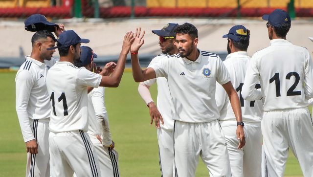 Bengaluru: South Zone pacers were brilliantly bellicose while reducing West Zone to 129 for 7 and help their team regain some of the lost ground on the second day of the Duleep Trophy final here on Thursday. West still trail South by 84 runs. Earlier, South were bundled out for 213 in their first innings. Once Prithvi Shaw and Harvik Desai took West to 97 for 1, they were poised for a romp and the conditions too remained a tad sunny. Shaw was quite a sight during that phase. The 23-year-old blunted the South pacers in his inimitable way, producing a slew of sparkling shots. Vidwath Kaverappa pitched the ball on his driving arc, a wowing cover drive followed. Vasuki Koushik marginally overpitched a delivery and Shaw produced a straight drive that is now patented to the Mumbai school of batting carried over by Sunil Gavaskar and Sachin Tendulkar. Vidwath’s delivery that was slanted to Shaw’s pads so slightly met with a delectable flick, an uncoiling wrist giving it power and direction. The three shots were enough to revalidate the class this young man possesses. It was clear that the South bowlers will have to conjure something exceptional to snap the second wicket alliance. Perhaps, the 65-minute rain break that arrived in the second session gave South a chance to take a step back and revisit their strategies. Their bowlers took to the field with a marked difference in approach post that break. Vysakh Vijayakumar came from around the wicket and peppered both Shaw and Harvik with short-pitched balls. West batters looked to have caught unawares and their reply was jittery. Shaw, a reluctant player of the upper cut by his own admission, was forced to play precisely that shot by Vysakh. But the ball was too close to his body, and there was not enough room for its execution. The rather half-hearted shot neither had elevation nor the distance and it ended in the hands of Vidwath at third man. He made a delightful 65 off 101 balls with 9 hits to the fence. Vidwath was a beneficiary of this tactic at the other end as batters tried to score off him. Unlike his partner, Vidwath resorted to bowling fuller lengths. Suryakumar Yadav seemed to have pre-programmed his mind to play the T20 brand of cricket here. Suryakumar could have got out to Vysakh but Sai Kishore failed to grab an uppish pull of him at mid-wicket. However, his stay ended very soon. The Mumbaikar could not negate a Vidwath delivery that reared from just short of the good length. Vidwath soon trapped Sarfaraz Khan plumb in front for zero with a full delivery as the batter played all over it. Once half of the batting unit was dismissed, it was left to Cheteshwar Pujara to hold the West innings together and get as close as to South’s total. But the man who has scripted several escape stories failed to enact one this time. R Samarth held on to Pujara’s flick off Vidwath as West’s ship sank further.