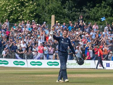 Calum Macleod hit an unbeaten century to guide Scotland to a six-run victory over England in the one-off ODI. Image Courtesy: Twitter @CricketScotland[/caption] But Scotland’s bowlers kept taking wickets and when pace bowler Safyaan Sharif had Mark Wood plumb lbw with seven balls to spare, England were 365 all out. Defeat raised fresh questions about England’s ability to win one-off, winner-takes-all fixtures following last year’s Champions Trophy semi-final loss to Pakistan. However, having seen England beat Australia 4-1 in an ODI series in Australia earlier this year, captain Morgan was confident this loss would not do lasting damage to England’s morale. “A one-off game like this, to bring your best game is very difficult to do, they played well and deserved the result,” said Morgan. “It’s not the end of the world for us, it was a really good run out and good to have practice coming into the series against Australia. The level of expectation has been high around the team for a while, it doesn’t get higher than being number one in the world. I don’t think we were far away, we go to a ground now that we know really well in The Oval, and we’ll be up for the challenge.” Morgan, however, accepted they had been well below the standard needed to win in what was their first 50-over match of the British season. “We were miles off where we expect to be and didn’t do enough to win,” he said. “The way we played, we didn’t deserve to win it. We might have scraped past them and won, but there were still quite a few mistakes made that we need to rectify and learn from ahead of the Australia series. “We didn’t do enough to win, if we had won it would have been a bonus from where we were,” added the former Ireland batsman. Scotland’s momentous victory came in their very first match since they were denied a place at next year’s World Cup barely three months ago. A combination of a controversial umpiring decision — with no review system in place — and rain saw them miss out in the qualifying tournament in Zimbabwe. The International Cricket Council had already angered Scotland and many of their fellow non-Test nations by cutting the number of teams at next year’s World Cup from 14 to 10. Former Durham and Warwickshire batsman MacLeod said Scotland’s first international cricket win over England was a massive statement, adding that “it does not take away what happened in Zimbabwe and everyone’s feelings about the 10-team World Cup but this was a special day.” “We want more games. That is the bigger shop window rather than personal side of it. If the ICC and other international teams look at this game they will see we are not an add on. This should be a catalyst for more games.”