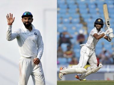 India vs Sri Lanka, 2nd Test Day 2: Pujara collects a single off the second delivery of the final over of Day 2, guiding it towards the off side. Kohli rolls his wrists off the fifth delivery, placing it wide of short midwicket to collect his sixth boundary. Blocks the last ball, as India finish the day on a score of 312/2, with a lead of 107. Day 1 report: India lost opener KL Rahul to end the opening day of the second cricket Test at 11/1 after bowling out Sri Lanka for 205 in the final session at the Vidarbha Cricket Association (VCA) Stadium here on Friday. Opener Murali Vijay (2 not out) and No.3 Cheteshwar Pujara (2 not out) were at the crease when the umpires dislodged the bails for the day. For the visitors, paceman Lahiru Gamage picked up the solitary wicket of Rahul, who got an inside edge back onto his stumps after trying to flirt with a delivery outside the off-stump. [caption id=“attachment_4226383” align=“alignleft” width=“380”] Indian captain Virat Kohli (L) and his Sri Lankan counterpart Dinesh Chandimal. AP[/caption] Rahul started the Indian response on a positive note, getting off the mark with a boundary through mid-off before going into a shell, which saw him consume 13 deliveries for his brief knock. Earlier, Indian spinners Ravichandran Ashwin and Ravindra Jadeja wreaked havoc, sharing seven wickets to bowl out Sri Lanka for 205 in their first innings. Ashwin, who went wicketless in the first two sessions, broke the backbone of the Lankan innings by removing skipper Dinesh Chandimal, who top-scored with a patient 122-ball 57 before adding three more wickets to return with figures of 4/67. Left-arm spinner Jadeja complemented the off-spinner well, finishing with 3/56 while veteran paceman Ishant Sharma also picked up three wickets giving away 37 runs in his 14 overs. Resuming the final session at 151/4, the tourists found the going tough and lost wickets at regular intervals with their last six wickets falling for just 54 runs. Besides Chandimal, opener Dimukh Karunaratne (51 from 147; 6x4) and stumper Niroshan Dickwella (24 from 30; 4x4) were the only other batsmen who managed to provide some resistance to the Indian spin duo. The series is currently squared at 0-0 after the drawn opening Test at the Eden Gardens in Kolkata.