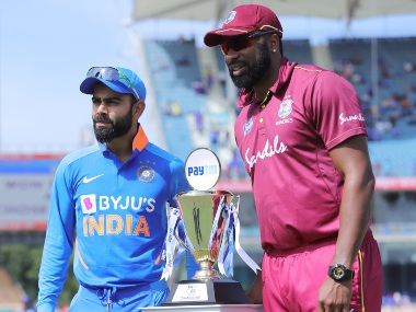 India vs West Indies, LIVE Score, 3rd ODI at Cuttack: The first ball from Cottrell is slower one but down the leg-side so it’s a wide. Jadeja plays and misses the next ball. The third ball results in a single. Cottrell goes for the bouncer but it’s over the head and umpire calls it wide. The next one goes for a six and then Shardul smashes a boundary. Two singles to end the over. 15 runs from the over. India need 7 from 12 balls. 3rd ODI preview: India will have winning momentum on their side as they head into the third and final ODI against the West Indies in Cuttack on Sunday. The West Indies took the home side by surprise in the opening ODI in Chennai to go one-up in the three-match series. But India, riding an all-round display, came back strongly to restore parity in the second match at Visakhapatnam. Barring a rare duck from skipper Virat Kohli, the Indian top-order fired in unison at Visakhapatnam, before hat-trick hero Kuldeep Yadav sliced through the West Indies line-up for a comprehensive 107-run victory. Rohi Sharma struck a blistering 159 while his opening partner KL Rahul also slammed a century. Then the duo of Shreyas Iyer and Rishabh Pant chipped in with quick-fire knocks, and they would like to end the year on a positive note. The pitch at the Barabati Stadium is going to be similar to the one in Visakhapatnam, offering plenty of runs. India’s fielding has not been up to the mark and they would certainly like to change that in the series-deciding ODI. As far as the Indian squad is concerned, Delhi pacer Navdeep Saini is in line to make his ODI debut in the absence of the injured Deepak Chahar, who was ruled out of the match with a lower back problem. Windies captain Kieron Pollard didn’t hesitate in chasing after winning the toss in the first two ODIs but come Sunday, the teams will be thinking twice before bowling second keeping the dew factor in mind. The West Indies, at the same time, will be keen to end a 13-year long wait to win against India in a bilateral ODI series. While the hosts, who lost to Australia 2-3 in their last bilateral series in March, will have their reputation at stake. Full Team Squads India Team Players: Rohit Sharma , Yuzvendra Chahal , Navdeep Saini , Shivam Dube , Shreyas Iyer , Manish Pandey , Rishabh Pant , KL Rahul , Virat Kohli(c) , Ravindra Jadeja , Kuldeep Yadav , Mohammed Shami , Mayank Agarwal , Shardul Thakur , Kedar Jadhav West Indies Team Players: Evin Lewis , Brandon King , Shimron Hetmyer , Kieron Pollard(c) , Jason Holder , Keemo Paul , Hayden Walsh , Sheldon Cottrell , Nicholas Pooran , Khary Pierre , Shai Hope , Roston Chase , Sunil Ambris , Romario Shepherd , Alzarri Joseph With inputs from PTI