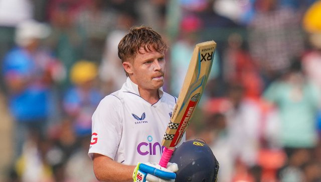 Ollie Pope scored a brilliant century as England gained a crucial 126-run lead on Day three of the first Test against India in Hyderabad on Saturday. At stumps on Saturday, England were 316/6, with Ollie Pope (148) and Rehan Ahmed (16*) having built an unbeaten 41-run stand. India had resumed from their overnight score of 421/7 on Day three, but spinners Joe Root and Rehan Ahmed picked wickets to dismiss the hosts for 436. That meant India went into England’s second innings with a lead of 190. Jadeja could not bring up a much-anticipated fourth Test hundred, falling leg before to Root. The left-hander went to front foot to defend a length delivery on off-stump, and the ball took a good amount of turn to hit his pads. Umpire Chris Gaffaney raised his finger as Jadeja opted to review the call. The ball seemed to have taken a deflection off his bat but the replays remained inconclusive and the third umpire went with the on-field umpire’s decision to give the batter out leg before. In the very next ball, Root castled Bumrah and Ahmed cleaned up Axar as Indian innings came to a quick end, losing their last three wickets without adding any runs. In their second innings, England lost Zak Crawley (31) who was caught by Rohit Sharma at slip off Ashwin’s delivery, but Ollie Pope and Ben Duckett forged a 68-run stand for the second wicket. Duckett was dismissed for 47 by Jasprit Bumrah in the 19th over, but could have been out in the 17th over for 39 had India taken a DRS for an LBW appeal. In the 17th over, Bumrah had seemingly dismissed Duckett LBW. Duckett got hit on the back pad following a length ball from Bumrah and after a discussion with Rohit Sharma, who himself had a chat with KS Bharat, the hosts decided to not opt for the review. However, the review would have done wonders since Hawkeye showed that the impact was in line and hitting the leg stump. Ollie Pope, though, showcased resilience with his patient knock, reaching his century in 154 balls. England lost their fifth wicket at 163/5 when Ben Stokes was dismissed for six, but Pope and Ben Foakes were involved in a 112-run stand for the sixth wicket, to help England take a 100-plus lead.