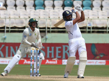 Visakhapatnam: India reached a commanding 202 for no loss before persistent rain forced early stumps on the opening day of the first Test against South Africa on Wednesday. Going strong at 202 for no loss in 59.1 overs, India were forced to take early tea after clouds gathered over the stadium towards the end of the second session. [caption id=“attachment_7441291” align=“alignleft” width=“380”] At the end of Day 1 of the first Test between India and South Africa, Rohit Sharma remained unbeaten at 115 off 174 balls. Twitter @BCCI[/caption] Heavens opened up during the break, delaying the start of the post-tea session at the Dr YS Rajasekhara Reddy ACA-VDCA stadium. With the rain showing no signs of abating, umpires decided to call off the play for the day.