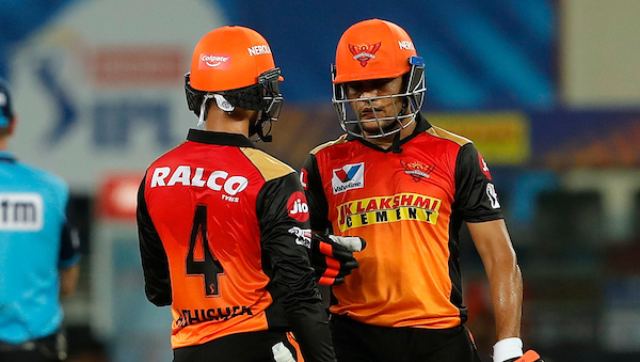 Dubai: There was no end to MS Dhoni and Chennai Super Kings’ woes as former India captain yet again struggled to take his side past the finish line, falling short by seven runs against Sunrisers Hyderabad in an IPL match, on Friday. CSK controlled the first innings for a large part before youngsters Priyam Garg (51 not out) and Abhishek Sharma (31) lifted SRH to a competitive 164 for five after electing to bat. Their top guns not contributing much, former India U-19 World Cup skipper Garg scored his maiden IPL fifty and with Abhishek raised a 77-run stand for the fifth wicket. SRH collected 53 runs in the last four overs to make it a contest. Playing a record 194th IPL game, the stage was set for Dhoni to silence his critics but all he could manage was 47 runs off 36 balls as CSK fell short. Coming to bat at number five, Dhoni had enough balls at his disposal, a manageable target and trusted aide in Ravindra Jadeja (50) for company but again his attack came too late. [caption id=“attachment_8874911” align=“alignnone” width=“640”]  Priyam Garg and Abhishek Sharma put together a vital partnership to take SRH to an unassailable total. SportzPics[/caption] It was Jadeja who took CSK closer to the target before getting out while Dhoni struggled in their 72-run stand for the fifth wicket. Except for a few hits, Dhoni struggled to time the ball. He also lost steam towards the end, having batted in hot conditions for over an hour. He hit Khaleel Ahmed for a massive six in the 19th over, which had to be completed by him because Bhuvneshwar Kumar hurt his leg after bowling just one ball. CSK needed 28 runs from the final over and skipper David Warner handed the ball to 18-year-old J and K spinner Abdul Samad. It was a gamble which paid off. Samad started with a wide that yielded CSK a boundary but held his nerves to see his side through. SRH spinners, especially Rashid Khan deserve the credit for the win. The Afghan was, as usual exceptional, as he choked CSK with his well-measured deliveries. He did not get a wicket but conceded only 12 runs his four overs. It was the third defeat in a row for CSK in four matches, one of the worst starts for the three-time champions. Not only did a quick start elude CSK, they lost three quick wickets — Faf Du Plessis (22), Shane Watson (1) and Ambati Rayudu (8). The Indian pace trio of SRH — Bhuvneshwar, T Natarajan and Khaleel — kept the rivals under pressure. Bhuvneshwar sent back Watson (1) while Natarajan spoilt the comeback of Rayudu (8). Garg after a splendid knock, effected Du Plessis run out. Afghanistan’s Rashid Khan choked the runs with ever-reliable leg-spin while Jammu and Kahsmir’s Abdul Samad got rid of Kedar Jadhav (3). CSK needed 96 runs from the last six overs and some quick runs upfront would have helped them. After struggling in their initial matches, CSK brought Ambati Rayudu, Dwayne Bravo and Shardul Tahakur for Friday’s game. That CSK came into the match rejuvenated following a one-week break was evident with the way Deepak Chahar (2/31) troubled the SRH batsmen with his swinging deliveries. Sam Curran too showed control. Chahar was rewarded for his effort when he deceived Jonny Bairstow (0) with an in-swing ball that uprooted his stumps. Manish Pandey (29) was in good touch as he timed the ball nicely when pitched up and did not hesitate to play lofted shots while Warner worked the ball around. They managed 42 runs off the Powerplay overs. Pandey drove straight to Curran at mid-off off Thakur. Realising that time is ticking away, Warner tried to look for big shots but fell when Du Plessis, jumped perfectly to catch him near the boundary ropes. To make it worse for SRH, Kane Williamson (9) was run out next ball in a mix up with Garg. The responsibility to carry the team forward fell on the young shoulders of Garg and Abhishek, who did not disappoint. That Abhishek is talented is already known and the southpaw further enhanced his reputation with some confident and cracking shots. Garg too found his touch as he spent time at the crease and went on to score his maiden IPL fifty.