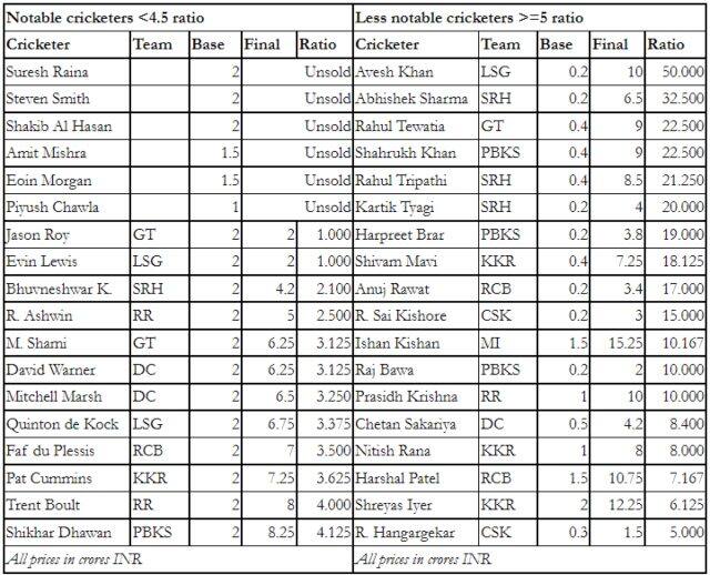 The writing was probably on the wall when the eight Indian Premier League (IPL) franchises revealed their retention lists, in November. In January, the two new franchises drafted in six cricketers to meet their quota. Of the 33 cricketers listed by the ten teams, 10 were overseas. Of the rest, Yashasvi Jaiswal, Abdul Samad, Umran Malik, Arshdeep Singh, and Ravi Bishnoi are yet to play for India. Mayank Agarwal, Prithvi Shaw, and Shubman Gill have played international cricket, but not T20Is. Among the others, Venkatesh Iyer debuted after the 2021 IPL ended, and Varun Chakravarthy and Ruturaj Gaikwad in last year’s tour of Sri Lanka, where India put together what can barely be called a second-strength side between the two phases of last year’s IPL. In other words, 11 out of 23 Indian cricketers guaranteed an IPL contract for 2022 had not played T20Is before the start of IPL 2021. [caption id=“attachment_10007691” align=“alignnone” width=“640”] ![Avesh Khan became the costliest uncapped player of all time as Lucknow Super Giants paid Rs 10 crore for him. Image: Sportzpics for IPL](https://images.firstpost.com/wp-content/uploads/2021/09/Avesh-Khan-640.jpg) Avesh Khan became the costliest uncapped player of all time as Lucknow Super Giants paid Rs 10 crore for him. Image: Sportzpics for IPL[/caption] Contrast this with the mega auction of 2014. The eight franchises had, between them, retained 24 cricketers, 10 of whom were overseas. Of the remaining 14, only four – Manan Vohra, Stuart Binny, Sanju Samson, Ambati Rayudu – were yet to play T20Is for India. Of them, Rayudu had played ODIs. The leap has been significant. And as we saw at the 2022 auctions , the franchises stuck to the same strategy. The trend was evident from the onset of the auctions, when the marquee players – all priced at INR 2 crores – were announced. Shreyas Iyer, already touted as a potential expensive buy, earned a whopping INR 12.25 crores, more than six times his base price, from the Kolkata Knight Riders. An outstanding Test series against India, and two excellent seasons in IPL 2019 and 2020, had probably helped the franchises overlook an ordinary 2021 when they bid for Kagiso Rabada. He went to Punjab Kings for 9.25 crores. But Shreyas and Rabada remained the only two marquee cricketers to earn more than nine crores. Trent Boult and Shikhar Dhawan hit the eight-crore mark, but the others fell short. The second set featured Jason Roy, who went for his base price, and Suresh Raina and Steven Smith, who went unsold. From the set that followed, Shakib Al Hasan went unsold too. The same set – of capped all-rounders – consisted of Harshal Patel and Nitish Rana, both of whom went for more than seven times their base price. Shreyas had a higher contract, but as a marquee cricketer, Shreyas was also expected to earn more. With odd exceptions like Jofra Archer, several star cricketers ended up earning less than young, often uncapped, Indian cricketers. If Ishan Kishan became the most expensive purchase of the auctions (Mumbai Indians, 15.25 crores), Lucknow shelled out 10 crores for Avesh Khan, a whopping 50 times his base price of 20 lakhs. Rahul Tewatia, Shahrukh Khan, Rahul Tripathi, and Kartik Tyagi also got 20 times their base price or more. At the same time, Amit Mishra and Piyush Chawla – the two Indians with the most IPL wickets – went unsold. Kolkata did not show interest in Eoin Morgan, who had led them to the IPL final a few months ago. Chennai paid 14 crores for Deepak Chahar (more than Mumbai did for Jasprit Bumrah, or Chennai themselves for MS Dhoni). They got back Ambati Rayudu, Robin Uthappa, Dwayne Bravo, but there was no place for Suresh Raina, the leading run-scorer in their history. Morgan and Raina went unsold. The bids converging early for star cricketers and going a long way for lesser names are both counterintuitive strategies. Below are some examples.