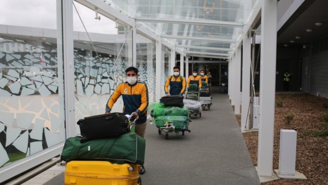 New Zealand Health said the players will now “be tested a minimum of four times while in managed isolation” and the entire squad would be confined to their rooms. Twitter @TheRealPCB[/caption] The host cricket board also alleged a breach of the bio-secure protocol by the visitors who have been asked not train in quarantine and issued a “final warning”. A large 53-strong Pakistan squad, led by Babar Azam, arrived in New Zealand on Tuesday and is serving a mandatory 14-day quarantine period as per COVID-19 protocol. “Two of these six results have been deemed ‘historical’; four have been confirmed as new,” NZC said in a statement without revealing the names of the players who have tested positive for the dreaded virus. However, sources in the PCB said that the six were Sarfaraz, Mohammed Abbas, Abid Ali, Naseem Shah, Rohail Nazir, Danish Aziz. All six members of the squad will be moved to the quarantine arm of a managed isolation facility. Pakistan are here for three T20 Internationals and two Tests. The series begins 18 December in Auckland. “As a consequence, the Pakistan team’s exemption to train while in managed isolation has been put on hold until investigations have been completed,” the NZC stated. The home board also spoke of a protocol breach but did not specify the exact nature of it. “Separately, NZC has also been made aware that some members of the Pakistan team had contravened protocols on the first day of managed isolation. “We will be having discussions with the tourists to assist them in understanding the requirements,” the NZC statement added. According to New Zealand media, the Canterbury District Health Board’s medical officer of health has sent a letter to the squad’s management saying all team members must stay in their rooms until further advised. The breaches, reportedly caught on CCTV cameras, happened despite “clear, consistent and detailed communication of expected behaviours” according to a health ministry spokeswoman. The country’s Director-general of health Dr Ashley Bloomfield said rule breaking was being taken very seriously. “It is a privilege to come to New Zealand to play sport, but in return teams must stick to the rules that are designed to keep COVID-19 out of our communities and keep our staff safe,” Bloomfield was quoted as saying by stuff.co.nz. “The team as a whole has been issued with a final warning,” he said. At least 10 Pakistan cricketers had tested positive for COVID-19 before the team’s England tour earlier this year. Prior to leaving Lahore, all members of the Pakistan squad returned negative results on the four occasions they were tested. In addition to the senior squad, Pakistan’s A team is also here to compete in a couple of four-day matches beginning 10 December.