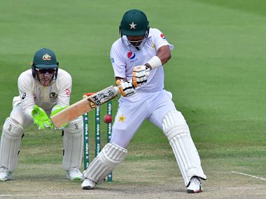 Abu Dhabi: Pakistan grabbed an early wicket after Babar Azam struck a fluent 99 to edge closer to claiming a series victory over Australia in the second Test at Abu Dhabi on Thursday. Azam narrowly missed out on a hundred after an aggressive innings, while skipper Sarfraz Ahmed followed up his first-innings 94 with 81 as Pakistan declared their second innings at 400-9, setting a daunting 538-run target for the tourists. By the close on the third day, Pakistan had Shaun Marsh dismissed for four – bowled by left-arm paceman Mir Hamza for his first Test wicket – to boost their chances of victory after Australia clung on for a thrilling draw in the first Test in Dubai last week. [caption id=“attachment_5405781” align=“alignleft” width=“380”]