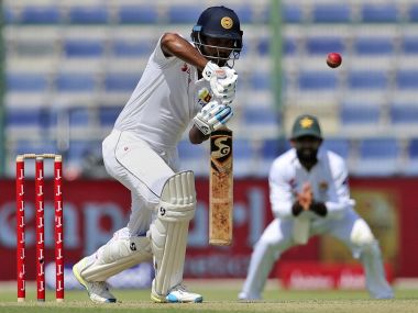 Abu Dhabi: Opener Dimuth Karunaratne fell seven runs short of a deserved century as he anchored Sri Lanka’s fightback on the opening day of the first Test against Pakistan in Abu Dhabi on Thursday. The left-hander was run out for 93 but helped his team recover from a precarious 61-3 to reach 227-4 at close after Sri Lanka won the toss and batted on a greenish Sheikh Zayed Stadium pitch. Karunaratne added an invaluable 100-run partnership with skipper Dinesh Chandimal, who was 60 not out at stumps, as Pakistan failed to break through with the second new ball. [caption id=“attachment_4092795” align=“alignleft” width=“380”] Sri Lanka’s Dimuth Karunaratne plays a shot on Day 1 of the 1st Test against Pakistan in Abu Dhabi. AP[/caption] Niroshan Dickwella was unbeaten on 42, having added 66 runs for the unbroken fifth-wicket stand alongside his captain. Chandimal was given leg before to Yasir Shah on 42, a decision which was overturned on review. His innings has included six boundaries while Dickwella hit five fours and a six during his aggressive knock. Shah returned figures of 2-59 but didn’t get much turn from the pitch while seamer Hasan Ali took 1-58. It was Karunaratne’s knock that brought Sri Lanka back into it in the last two sessions. He batted for four hours and 40 minutes during an obdurate stay at the crease, recording his fourth half-century against Pakistan and sixth overall. But he was run out in the last session as he attempted a quick single only to be left stranded after Chandimal at the non-striker’s end sent him back. Karunaratne said the pitch had made life challenging for the batsmen. “We did quite well in the first hour, but lost two wickets after that. But then we managed to pull things back. It’s not an easy wicket to bat on. Not easy to get runs quickly and you’ve got to wait for those loose balls,” he said. Karunaratne refused to lay the blame for his run out solely on his skipper. “It’s part of the game and it happens when you play cricket. Can’t say entirely his fault, partly mine too,” said Karunaratne, adding, “a total of 350 or 400 would be great”. Shah equals Waqar mark Pakistan had the advantage in the first session with leg-spinner Shah taking two wickets, dismissing left-hander Lahiru Thirimanne for his 150th Test wicket. Shah matched fellow countryman Waqar Younis as the joint second fastest to 150 wickets — both achieving the milestone in their 27th Test. Australia’s Sydney Barnes holds the record after reaching the landmark in just 24 Tests. At the start, Karunaratne had a solid opening stand of 34 with Kaushal Silva before Hasan provided Pakistan with the breakthrough. Hasan bowled Silva for 12 as the batsman played on to an inswinging delivery. Shah then had Thirimanne trapped leg before for a duck and Kusal Mendis caught behind for 10 to leave Sri Lanka reeling. The Test is Pakistan’s first since the retirement of legendary batsman Younis Khan and their most successful Test skipper, Misbah-ul-Haq. Pakistan handed a Test cap to batsman Haris Sohail, while Sri Lanka went into the game with three spinners and two seamers. English umpire Ian Gould became an early morning casualty as the 60-year-old succumbed to an upset stomach and was replaced by Richard Kettleborough, originally the television umpire.