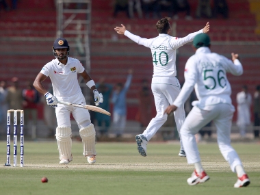 Karachi: Pakistan openers responded aggressively to cut down Sri Lanka’s lead to 23 runs on day two of the second Test on Friday. Abid Ali (32) and Shan Masood (21) scored at a brisk pace and guided Pakistan to 57-0 in 14 overs of their second innings before stumps were drawn for the day due to bad light. Dinesh Chandimal’s resolute 74 and Dilruwan Perera’s equally splendid 48 had earlier helped Sri Lanka score 271 and get an 80-run first innings lead. [caption id=“attachment_7809241” align=“alignleft” width=“380”]