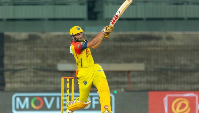 Chennai: M Shahrukh Khan’s 69-ball century powered Tamil Nadu XI to a 58-run win over Bangladesh XI in the second one-dayer here on Tuesday. Asked to bat by the visiting team, TN posted 306 for 7 in 47 overs in their innings which was interrupted by rain. In reply, Bangladesh could make only 194 for 6 in 40 overs when showers halted play and lost by 58 runs under the Duckworth/Lewis method. The home team had won the first match on Sunday by 11 runs. TN openers L Suryapprakash (42, 44 balls, 5 fours) and N Jagadeesan (18, 20 balls, 3 fours) put on 28 runs before the latter was bowled by Rejaur Rahman Raja (1/21). B Sai Sudharsan (40), captain B Indrajith (20) and N S Chaturved (26) got starts but did not go on to make bigger contributions while Khan who came in at No.6 took the game away from the Bangladesh team with his power-packed knock. The burly right-handed batter added 53 runs for the fifth wicket with Chaturved before the latter fell. He was then involved in a half-century partnership with left-hander R Sanjay Yadav (39, 26 balls, 3 fours, 3 sixes) which enabled the host team to put up a big score. Chasing 310 for victory (DLS method), Bangladesh suffered an early blow when Mahmudul Hasan Joy fell to the second ball of the innings, caught and bowled by R Silambarasan (2/34). Anamul Haque Bijoy (24) and Mohammad Saif Hasan (30) added 56 runs in quick time before the TN bowlers bounced back with wickets at regular intervals. Brief scores: Tamil Nadu XI 306 for seven in 47 overs (L Suryapprakash 42, B Sai Sudharsan 40, N S Chaturved 26, M Shahrukh Khan 100 not out (69b, 7x4, 4x6), R Sanjay Yadav 39) beat Bangladesh XI 194 for six in 40 overs (Mohammad Saif Hasan 30, Mohd Tawhid Hiridoy 73 not out (75b, 6x4s, 1x6), Jaker Ali Anik 36 not out, R Silambarasan 2/34) by 58 runs (DLS Method). Read all the Latest News ****, Trending News ****, Cricket News ****, Bollywood News ****, India News and Entertainment News here. Follow us on Facebook****, Twitter and Instagram****.