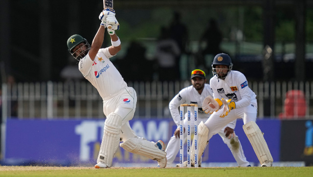 Colombo: Pakistan’s new aggressive approach paid rich dividends as it bowled out Sri Lanka for 166 before racing to 145-2 in reply on Day 1 of the second cricket Test on Monday. Pakistan, 1-0 up in the two-match series, is in complete control despite losing the toss and having to field first at the Sinhalese Sports Club (SSC). At one stage the tourists were scoring at 6.5 runs an over, with the 50 coming up in 50 balls and the 100 arriving in 101 deliveries. Abdullah Shafique needed only 49 deliveries to reach his fifth Test half-century while Shan Masood raced to his seventh half-century in just 44 balls. Asitha Fernando claimed the first Pakistan wicket to fall, removing Imam-ul-Haq for six, before coming back for a second spell and having Masood caught at wide mid-on for 51. Shafique, who was dropped by Prabath Jayasuriya off his own bowling on 42, reached 74 not out at stumps, with captain Babar Azam unbeaten on 8. Earlier, leg-spinner Abrar Ahmed took 4-69 and fast bowler Naseem Shah claimed 3-41 as Sri Lanka was skittled out by a Pakistan side bowling to aggressive fields.