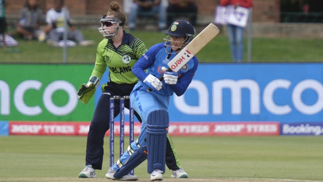 Smriti Mandhana’s career-best 87 helped India post a competitive 155/6. Ireland, in reply, were five runs short of the par score in the ninth over when the heavens opened up The slow nature of the wicket notwithstanding, Mandhana maintained an excellent strike rate and reached her half-century in style, hitting leg-spinner Cara Murray for a six over deep midwicket. Mandhana was lucky to have survived a scare just before getting to her fifty, but Arlene Kelly could not complete the catch after the batter top-edged a tossed-up delivery from Murray towards midwicket. Mandhana then struck two successive fours off Georgina Dempsey, before sending Delany over the cow corner for another maximum. Ireland came back with the wickets of Harmanpreet and Richa Ghosh in successive balls, but Mandhana continued to attack the bowlers and hit two more boundaries off Kelly before giving the same treatment to Delany, striking her for a four and a six to help India inch towards 150. A century was on the cards, but Mandhana’s brilliant innings came to an end as she tried to take the aerial route. Jemimah Rodrigues struck two fours in the final over, before getting off in the last ball of the India innings for a 12-ball 19. Read all the Latest News ****, Trending News ****, Cricket News ****, Bollywood News ****, India News and Entertainment News here. Follow us on Facebook****, Twitter and Instagram****.