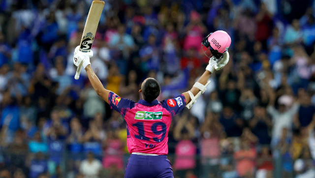 Yashasvi Jaiswal smashed his maiden hundred in the 1000th match in the Indian Premier League (IPL) to power Rajasthan Royals to a commanding total against Mumbai Indians in Mumbai on Sunday. IPL 2023: Full coverage | Points table | Schedule | Results | Orange Cap | Purple Cap The left-handed opener from Mumbai couldn’t have picked a more iconic occasion than the milestone match to bring up the three-figure mark not just in the IPL, but in all T20 cricket. Jaiswal brought up the milestone with a boundary, taking 53 balls along the way, and would ultimately get dismissed for a 62-ball 124 — the highest individual score of the season so far — as Rajasthan posted a commanding 212/7 after opting to bat against Mumbai at the Wankhede Stadium.
