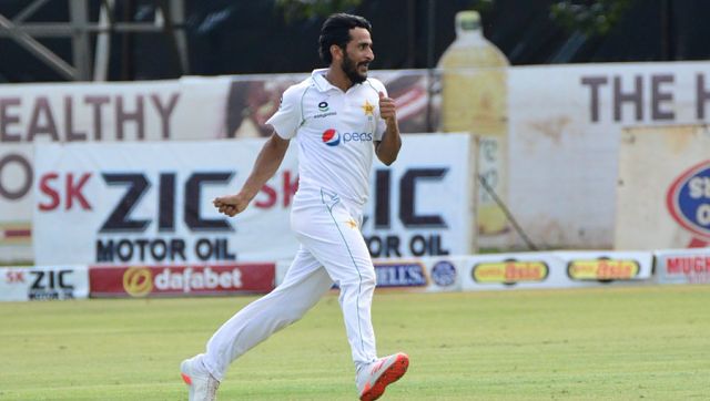 Harare: Fast bowler Hasan Ali registered career best figures of 5-36 to lead Pakistan to a comprehensive innings and 116 run annihilation of Zimbabwe in the first Test in Harare on Saturday. The 26-year-old finished with 9-89 in the match as Zimbabwe’s batting crumbled for the second time in the match, all out for 134 with an hour remaining on the third day at Harare sports club. The victory gives Pakistan a 1-0 lead in the two-match series. The second Test is also in Harare from 7 May. Zimbabwe, who were bowled out for 176 in the first innings, were facing an innings defeat at tea with the total at 118-5. Hasan had already picked up the first wicket of the innings when he had Kevin Kasuza leg before for 28 to end a promising opening partnership of 48. [caption id=“attachment_9583921” align=“alignnone” width=“640”]  Hasan finished with 9-89 in the match as Zimbabwe’s batting crumbled for the second time in the match, all out for 134. Image Courtesy: Twitter @TheRealPCB[/caption] After tea he stepped up a gear as he bowled Donald Tiripano for two and Tendai Chisoro, caught in the slips off his second ball for nought, to mark his 50th wicket in Test cricket. That opened up the tail and Hasan ripped through them too, hitting Blessing Muzarabani’s leg stump as the Zimbabwe pace bowler tried to slog his team out of trouble. Finally, he bowled Richard Ngarava off a low full toss and with the last man Prince Masvaure unable to bat due to injury, Pakistan players celebrated the victory. Regis Chakabva remained not out on 14. It was Hasan’s fourth five-wicket haul in 12 Tests, improving on the 5-45 he took against New Zealand in Abu Dhabi in 2018. Spinner Nauman Ali earlier picked up the wickets of Milton Shumba and Brendan Taylor before tea to finish with 2-27. Pakistan’s skipper Babar Azam praised Hasan and centurion Fawad Alam for Pakistan’s first-ever innings victory over Zimbabwe, 11th in 18 Tests overall. “Hasan was outstanding in this Test and so was Alam,” said Azam, who was dismissed for a first ball duck. “It was an outstanding finish by Hasan, he has been improving with every match.” Zimbabwe’s skipper Taylor, standing in for unfit Sean Williams, lamented poor batting. “Getting bowled out in two sessions on day one let us down and to then field for 130 overs put us behind the eight-ball,” said Taylor. “We need to work on our batting as a group.” In the morning Pakistan were bowled out for 426 with overnight centurion Alam the last man out for 140. Hasan shines Trailing by 250 runs in the first innings, Zimbabwe were off to a solid start before Hasan ran riot. Openers Kasuza and Tarisai Musakanda reached lunch on 36 without loss and took their partnership to 48 before Hasan provided Pakistan with the breakthrough. Hasan, who took 4-53 in the first innings, trapped Kasuza, who had already been dropped on 15, leg before for 28 while Nauman had Shumba caught behind by Mohammed Rizwan for four. A well-set Musakanda was run out for 43 while needlessly attempting a third run. He hit five boundaries in a fighting 84-ball knock. First innings top scorer Roy Kaia lasted just four balls for his duck, falling leg before to Faheem Ashraf. Stand-in skipper Taylor tried to hit his team out of trouble, smiting two fours and a six in his 29 before holing out to Hasan running back from mid-off. Earlier, Pakistan were dismissed for 426 after resuming at a healthy 374-6 before Fawad Alam became the last man out for 140. Alam, who was 108 not out overnight, hit 20 boundaries in his three minute short of five hour batting. He tried to hit Muzarabani to the leg side but edged to wicketkeeper Chakabva. Hasan used the long handle most effectively in his 26-ball 30 which included two sixes and three boundaries. Muzarabani finished with 4-73 while Tiripano had figures of 3-89.