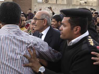 Cairo: As the Egyptian presidential elections enters the crucial run-off stage, former IAEA chief Mohamed ElBaradei has demanded its cancellation, questioning the legitimacy of one of the candidates. “The real battle right now is writing Egypt’s new constitution,” ElBaradei who shied away from the tussle said as he demanded that the polls be cancelled. [caption id=“attachment_334277” align=“alignleft” width=“380” caption=“Reuters”]  [/caption] The Egyptian activist said “the legitimacy of one of the candidates is highly doubtful,” apparently referring to former Prime Minister Ahmed Shafiq. He also said there are doubts about the legitimacy of Parliament, and added that he is heading to Tahrir Square to support the cause. ElBaradei said that he would hold a meeting with the revolutionary youth, claiming that, “The revolution did not achieve any of its goals, including bread, freedom and social justice.” A number of political parties said on Sunday that the presidential election ‘under the rule of the military council’ are invalid. The meeting agreed on three demands — the cancellation of the presidential election, the immediate transfer of power from the military council to a civilian presidential council, and holding special “revolutionary tribunals” for the defendants in the Mubarak case. PTI