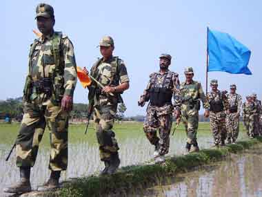 Agartala: A two-day Indo-Bangla district collector level meeting would begin in Agartala on Wednesday to discuss identification of cemeteries of the soldiers of the 1971 Bangladesh liberation war, official sources said today.[caption id=“attachment_921797” align=“alignleft” width=“380”] Border Security Force (L, with orange flag) and Bangladesh Rifles troopers (R, with blue flag) conduct a joint foot patrol on the zero line, the India-Bangladesh border, in Nischintapur. AFP[/caption] Many soldiers who died in the 1971 war against Pakistan were buried on the Indian side and the government of Bangladesh has taken the initiative for identification of those graveyards. The meeting would discuss how to identify the four decade old cemeteries, the sources said. The other issues which would figure in the meeting are problems of barbed wire fencing in the border, trafficking of women and children, border crimes and smuggling of phensydil cough syrup used for addiction. The Indian delegation would be headed by Kiran Gitye, district magistrate of West Tripura district, and Bangladesh side would be headed by the deputy collector of neighbouring Brahmanbaria district. PTI
