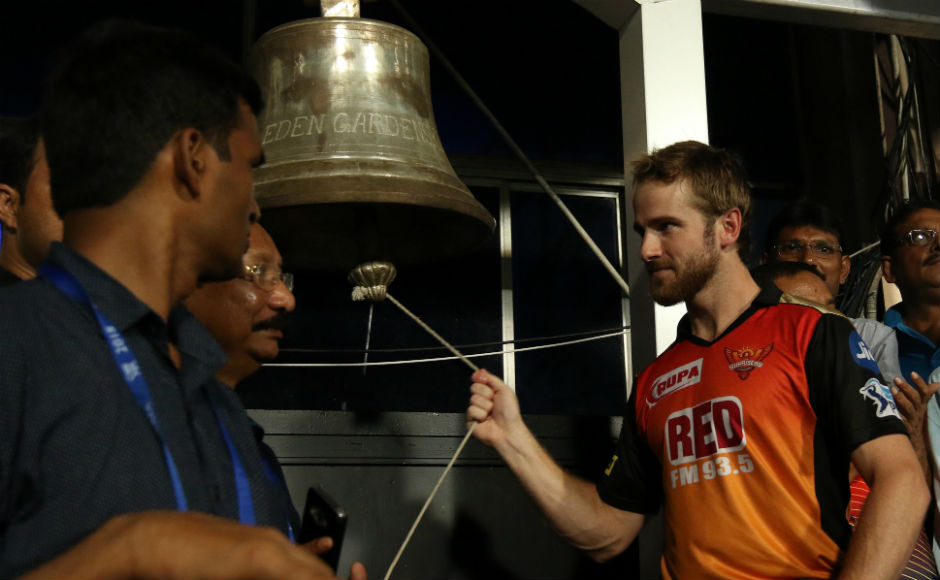 Kane Williamson rings the bell at the Eden Gardens ahead of the second Qualifier. Sportzpics
