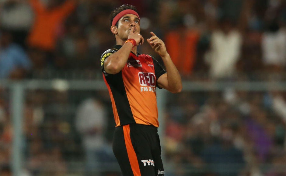 Siddharth Kaul celebrates after dismissing Piyush Chawla. Sportzpics