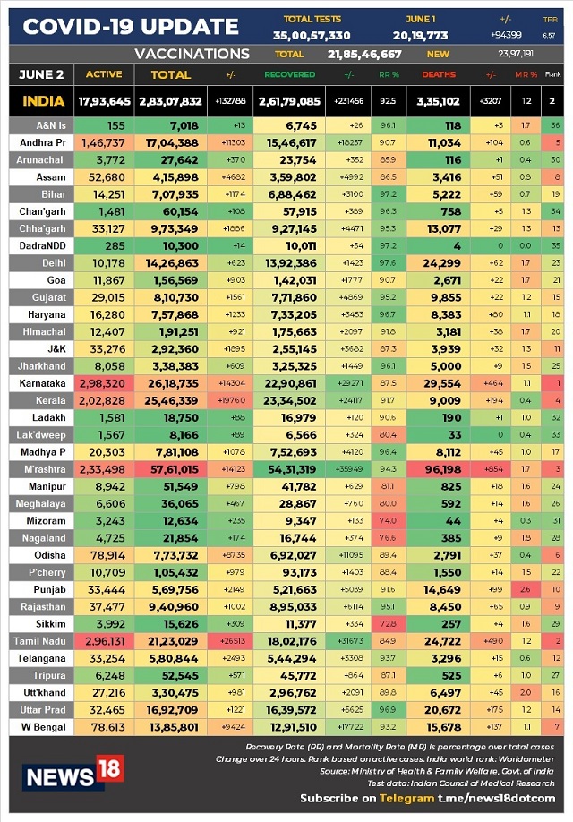 Coronavirus LATEST News Updates: Following the Centre’s decision to cancel class 12 CBSE board exams in view of the Covid pandemic, several states including Gujarat, Madhya Pradesh and Uttarakhand called off their board exams on Wednesday while few others said they will take a call soon. Mumbai on Wednesday reported less than 1,000 fresh coronavirus cases for the third consecutive day while 1,632 patients were discharged As many as 594 doctors have died due to COVID-19 in the ongoing second wave with Delhi recording the maximum 107 fatalities, the Indian Medical Association (IMA) has said. According to the IMA, 748 doctors died of the infection across the country in the first wave of the pandemic. Delhi recorded 576 fresh COVID-19 cases at a positivity rate of 0.78 per cent and 103 more fatalities due to the disease on Wednesday. West Bengal Chief Minister Mamata Banerjee on Wednesday called the Centre’s statement that it will vaccinate all citizens before December a hoax, reports ANI. The Supreme Court on Wednesday made a prima facie observation that the Centre’s vaccination policy, which does not provide free vaccination for those in the age group of 18 to 44 years, as ‘arbitrary and irrational’, reports LiveLaw . The Supreme Court has directed asked states/UTs to file an affidavit submitting their stand on providing vaccination free of cost to its population within two weeks. Odisha Chief Minister Naveen Patnaik on Wednesday wrote to all chief ministers on centralised procurement of vaccines by the Government of India and asked them to join hands in the fight against COVID-19. Hours after the Gujarat board announced the cancellation of Class 12 exams, Madhya Pradesh Chief Minister Shivraj Singh Chouhan said HSC exams in the state have been scrapped. The Delhi High Court said if the Delhi government could not ensure that people will get both the doses of COVAXIN within the stipulated time, then it should not have started so many vaccination centres with “much pomp and splendour”. Minister of State (Home) G Kishan Reddy said the Centre has formulated action plans to ensure all citizens are vaccinated by December this year, mentioning that talks are on with pharma companies to produce 250 crore doses. Gujarat Secondary and Higher Secondary Education Board cancelled the Class 12 board examinations, ANI quoted state education minister Bhupendrasinh Chudasama as saying. India has reported lowest daily new cases of 1.32 lakh in 54 days, maintaining the decline in trend in the new cases. IMA said that 594 doctors died during the more infectious second wave of the coronavirus pandemic in the country. The data shared by IMA showed that as many as 107 doctors had died in Delhi during the second wave. Bihar saw the deaths of 96 doctors, while 67 died in Uttar Pradesh, 43 in Rajasthan, and 39 in Jharkhand. As India battles the second wave of COVID-19, the country has recorded 1.32 lakh daily new cases, taking the number confirmed cases so far to 2,83,07,832, as per figures updated by the health ministry at 8 am on Wednesday. While the decline in daily infections continued for the 54th day, the toll climbed to 3,35,102 with 3,207 deaths being reported in the last 24 hours. Over 21.85 crore vaccine doses have been administered so far and a consignment of 15 ventilators and 12,000 tablets of anti-viral drug Favipiravir arrived in the country from Iceland. This comes a day after India received the third and largest consignment of Sputnik V vaccines from Russia. Meanwhile, Prime Minister Narendra Modi on Tuesday announced that there will be no Class 12 board exams this year. Both CBSE and CISCE Class 12 exams have been cancelled. The PM’s office quoted him as saying, “The health and safety of our students is of utmost importance and there will be no compromise on this aspect.” Hours after Modi’s announcement, the Karnataka government said it will too take a call on whether to conduct SSLC and II PU exams. Primary and Secondary Education Minister S Suresh Kumar on Tuesday said, “We need to take a suitable decision after weighing all the options.” The Indian Medical Association stated that 594 doctors succumbed during the second wave of COVID-19.