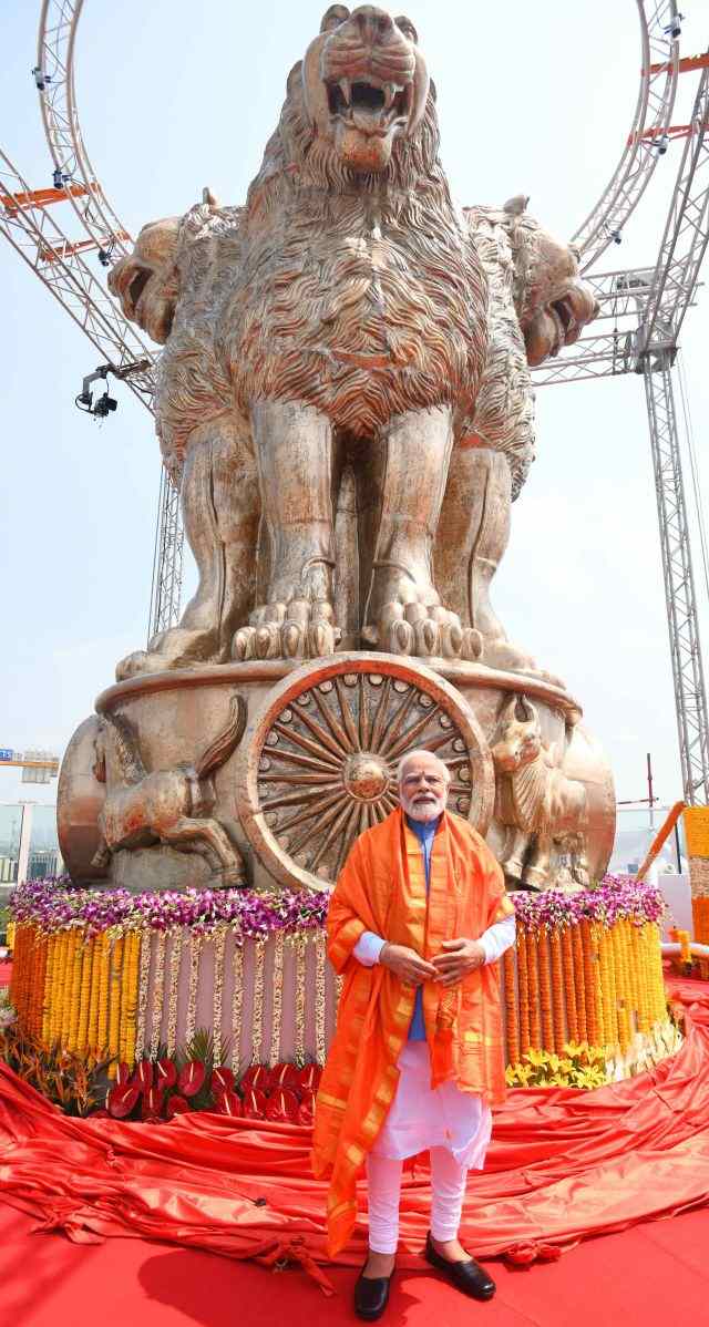 This morning, I had the honour of unveiling the National Emblem cast on the roof of the new Parliament. pic.twitter.com/T49dOLRRg1